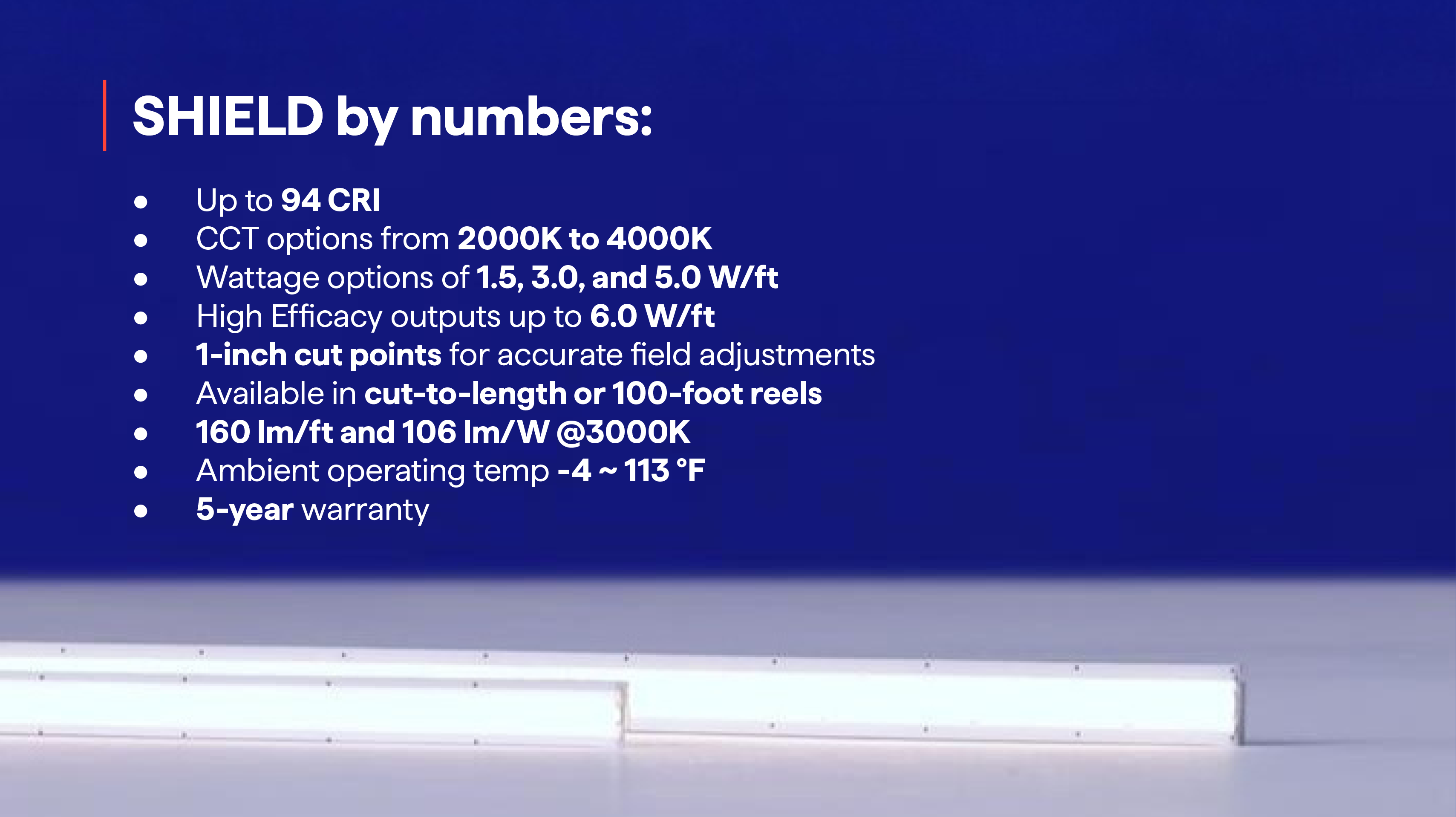SHIELD delivers uninterrupted illumination suited for architectural details where visual consistency matters. Designers can easily match the tone of a space, whether they’re creating a warm residential glow or a clean, neutral commercial environment.