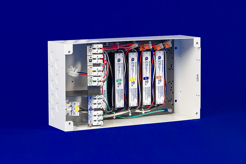 Once installed, enclosures centralize zones and dimming protocols, making today’s advanced control systems easier to manage. And with accessible, organized power supplies, ongoing maintenance, upgrades, and repairs become faster, cleaner, and more sustainable.