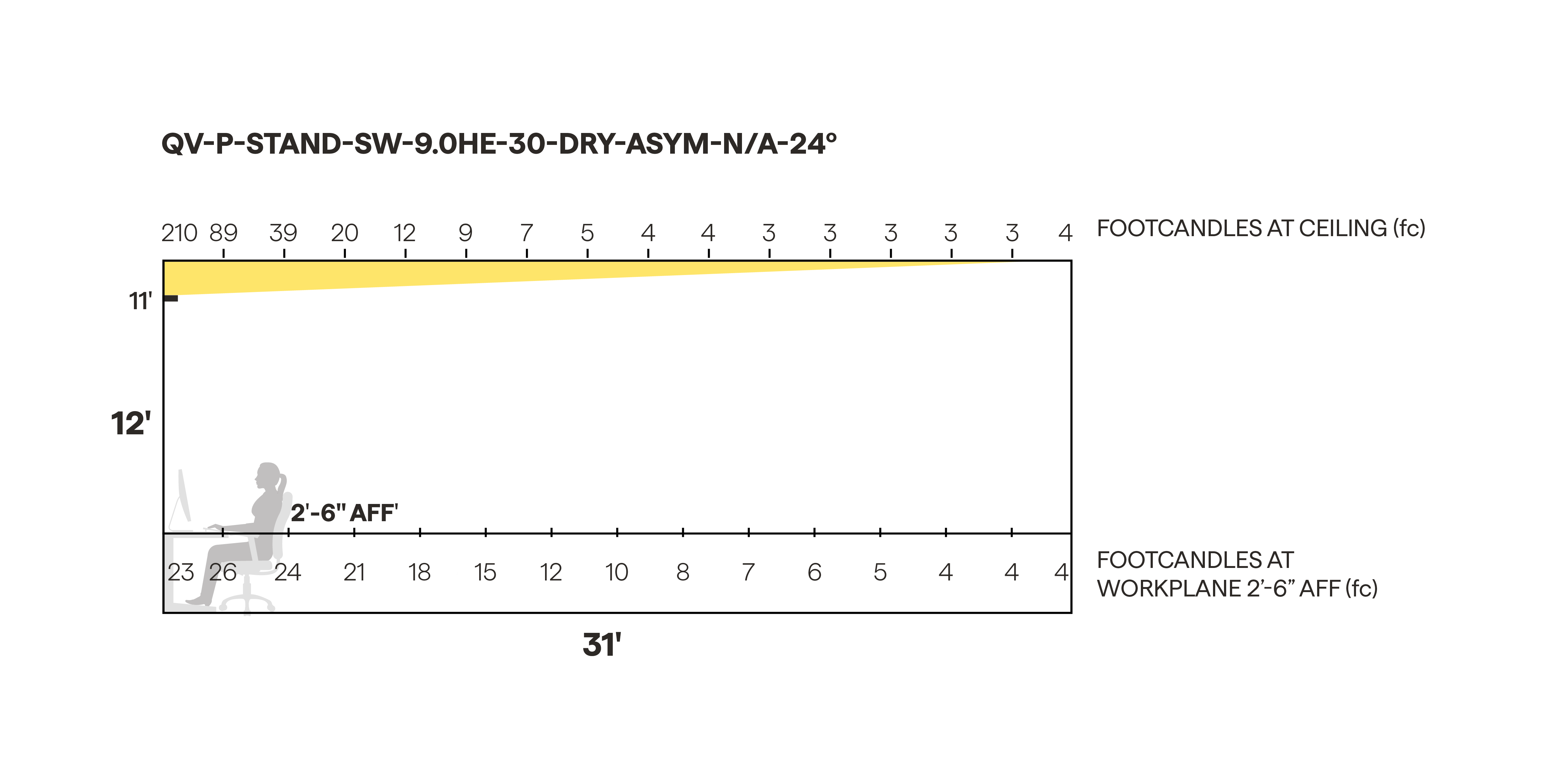 What sets QUOVA PERFORMANCE apart is its proprietary asymmetric optic, which directs light forward with concentrated peak intensity. This ensures smooth, uniform illumination across ceilings, even when mounted in shallow coves. Independent photometric testing and real-world ceiling and workplane calculations validate its exceptional output at both 6-inch and 12-inch offsets, confirming its ability to deliver even light distribution over long throws. For architects and lighting designers, this translates into greater flexibility and confidence when working with tight architectural details.