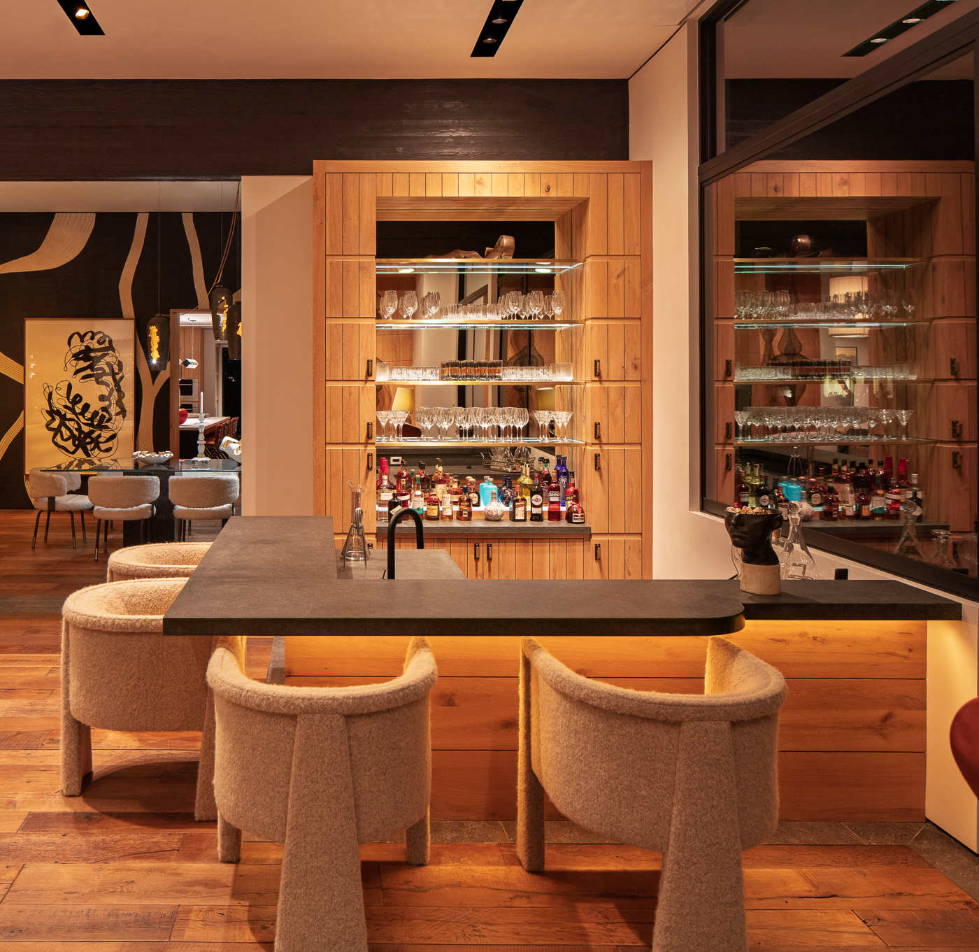 VERS accentuated other elements as well. "There are a lot of other light sources in this space, but when you turn off the other lights and just see the bar, it's just beautiful, and lights the furniture as well," Rosemarie noted.